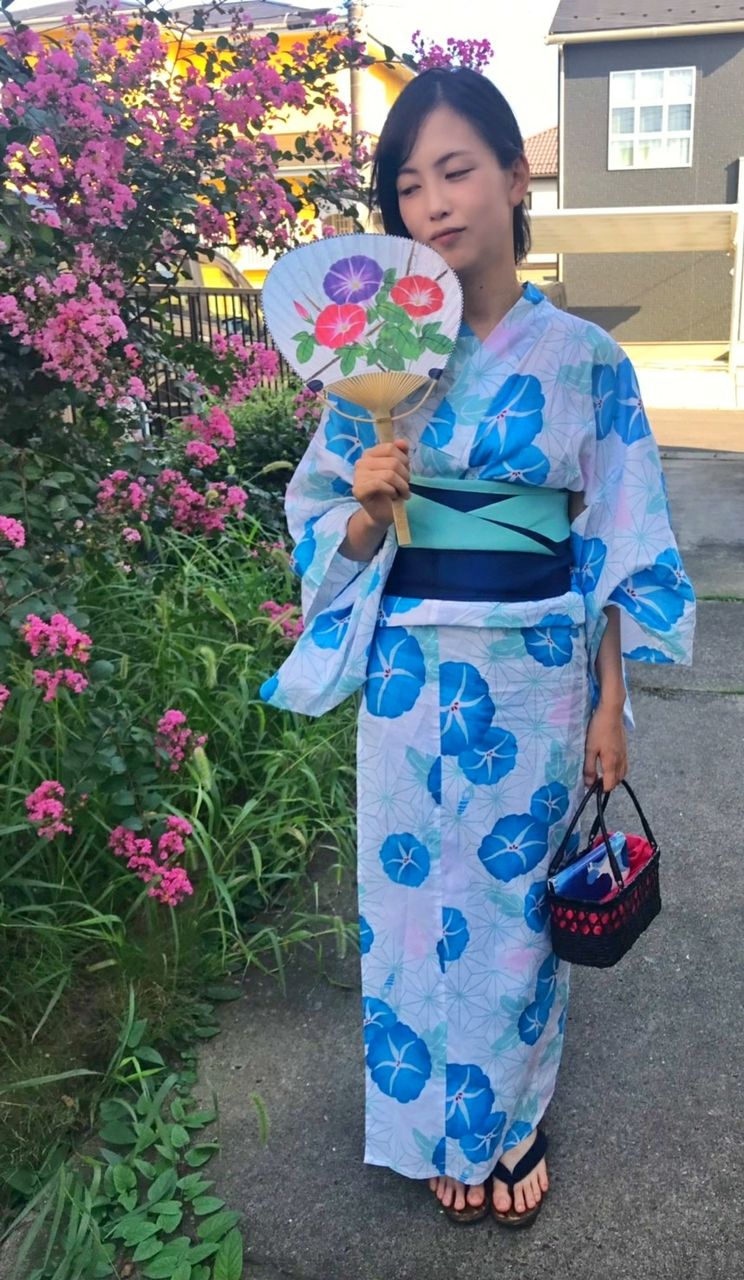 ふむ~♪。。、さすがオシャレ番長。。、浴衣👘がとてもオトナな着こなし。。、朝顔🌼。。、ステキです♪(//∇//)