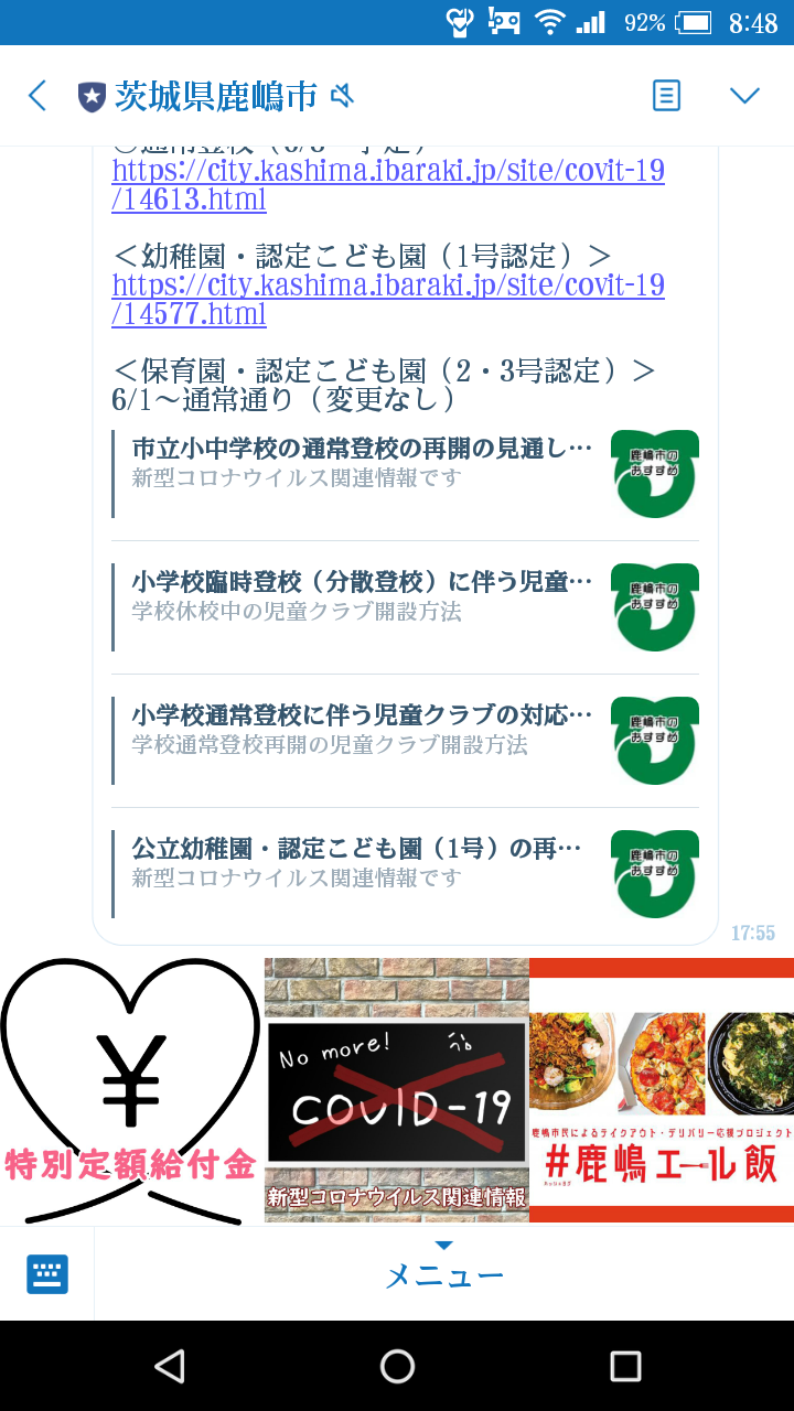 ちなみに、現在の鹿嶋市公式LINEはこんな感じ!