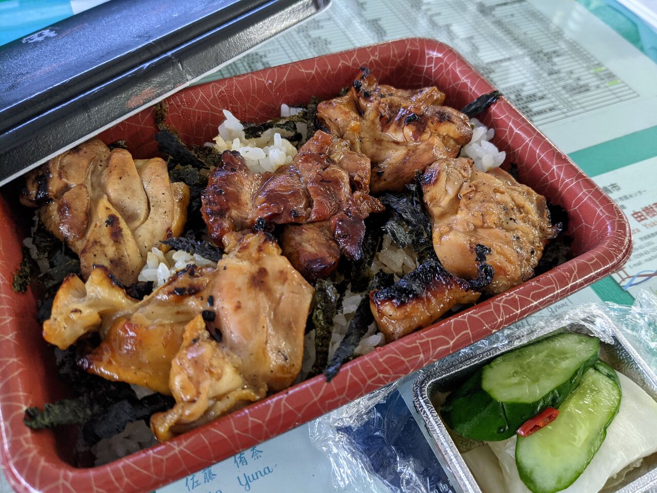 でかい焼き鳥がご飯に乗っている感じなのですが